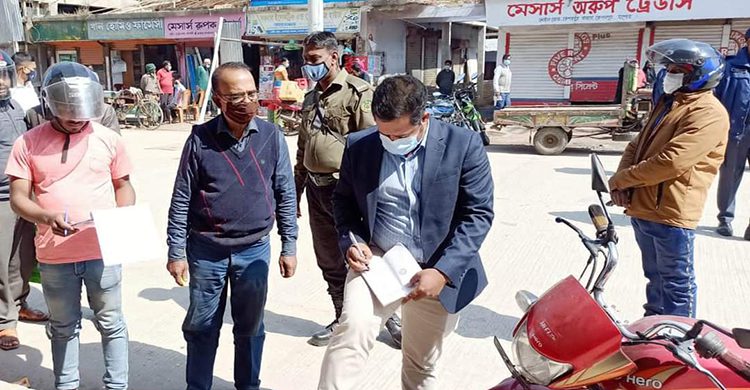 কেশবপুর (যশোর) প্রতিনিধি: কেশবপুরে শনিবার স্বাস্থ্যবিধি না মানায় ভ্রাম্যমাণ আদালত ৮ ব্যক্তিকে ১ হাজার ৬শ’ টাকা জরিমানা করেছে। উপজেলা নির্বাহী কর্মকর্তা ও নির্বাহী ম্যাজিস্ট্রেট এম এম আরাফাত হোসেন ওই ভ্রাম্যমাণ আদালত পরিচালনা করেন।