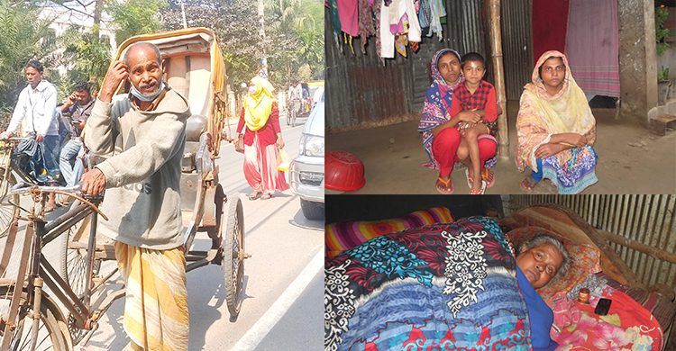 স্থানীয়রা জানান, আবুল হোসেন সকাল থেকে ভাড়ার পা রিকশা চালায়। যা আয় হয় তা দিয়ে চাল, ডাল ও তরিতরকারি ক্রয় করেন। একটি মেয়ে মানসিক ভারসাম্যহীন। অন্য মেয়ের স্বামী ফেলে রেখে গেছে। এ মেয়ের দুই সন্তান রয়েছে। দুই মেয়ে, দুই নাতি ও স্ত্রীসহ ছয় সদস্যদের পরিবারের ভার আবুল হোসেনের একার কাঁধে।