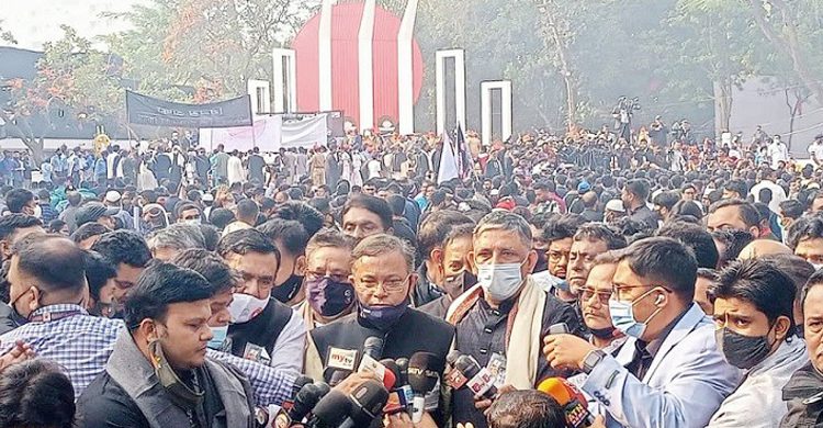 সোমবার (২১ ফেব্রুয়ারি) সকালে কেন্দ্রীয় শহীদ মিনারে ভাষা শহীদদের প্রতি শ্রদ্ধা নিবেদন ও ফুল দেয়া শেষে বিএনপি মহাসচিব মির্জা ফখরুল ইসলাম আলমগীরের এক বক্তব্যের জবাবে তিনি এসব কথা বলেন।