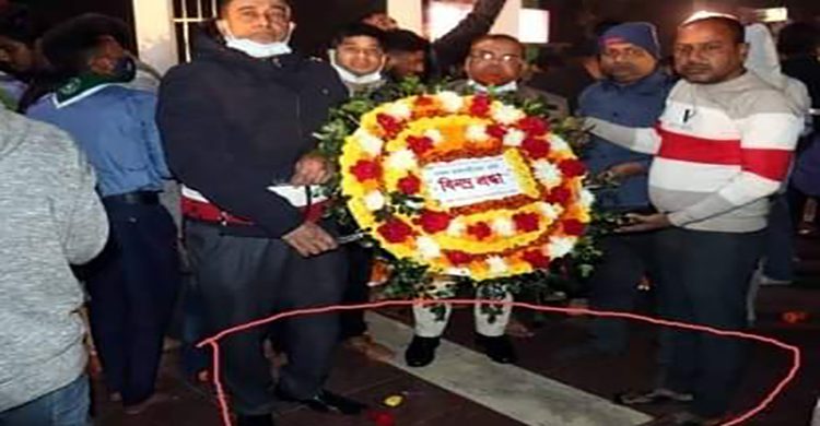 ২১ ফেব্রুয়ারী’র প্রথম প্রহরে সাতক্ষীরা কেন্দ্রীয় শহীদ মিনারে শ্রদ্ধা নিবেদন করেন সাতক্ষীরা হিসাব রক্ষণ অফিসের কর্মকর্তারা। শ্রদ্ধা নিবেদন করতে গিয়ে তাড়াহুড়ো করে জুতা পায়ে দিয়েই শহীদ মিনারে উঠে পড়েন জেলা হিসাব রক্ষণ অফিসের এস এ এস সুপারিনটেনডেন্ট মো: আব্দুস সোবহানসহ অন্যান্য স্টাফবৃন্দ।