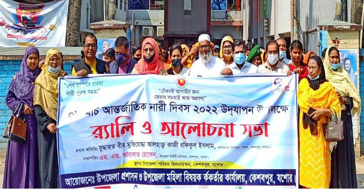 কেশবপুর ( যশোর) প্রতিনিধি: যশোরের কেশবপুরে আন্তর্জাতিক নারী দিবস উপলক্ষে মঙ্গলবার (৮মার্চ) সকালে উপজেলা প্রশাসন ও মহিলা বিষয়ক কর্মকর্তার কার্যালয়ের উদ্যোগে র্যালি ও আলোচনা সভা অনুষ্ঠিত হয়েছে।