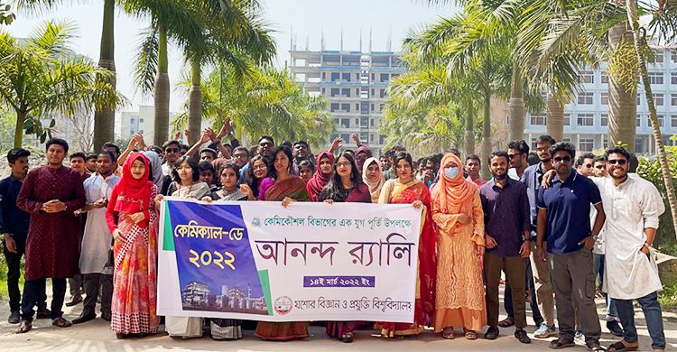 আজ মঙ্গলবার (১৪মার্চ) সকালে আনন্দ র্যালির মধ্য দিয়ে কেমিক্যাল ডে এর আনুষ্ঠানিক ঘোষণা করা হয়। র্যালি বিশ্ববিদ্যালয়ের বঙ্গবন্ধু শেখ মুজিব একাডেমিক ভবনের সামনে থেকে যাত্রা শুরু করে সারা ক্যাম্পাস প্রদক্ষিন করে বিভাগে এসে শেষ হয়। এসময় ” শুভ শুভ শুভ দিন, কেমিক্যাল এর জন্মদিন” স্লোগানে মুখরিত হয়ে উঠে সমস্ত একাডেমিক ভবন। স্লোগানে কেমিকৌশল বিভাগকে রয়েল বিভাগ হিসাবে উল্লেখ করেন স্লোগান ধারীরা।