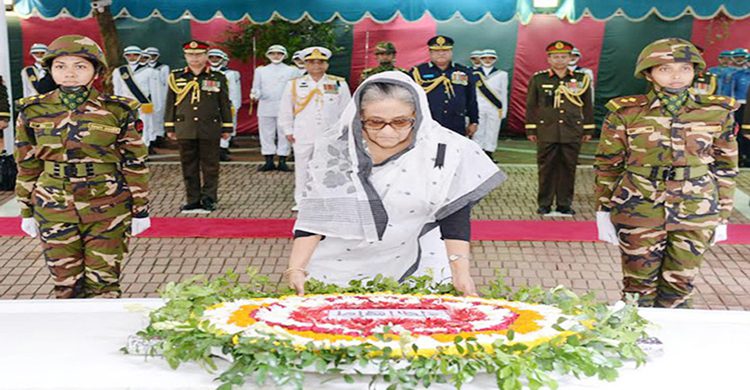 বৃহস্পতিবার (১৭ মার্চ) সকাল ৭টায় গোপালগঞ্জের টুঙ্গিপাড়ায় বঙ্গবন্ধুর সমাধিতে শ্রদ্ধা নিবেদন করেন প্রধানমন্ত্রী। এ সশস্ত্র বাহিনী সম্মান গার্ড রাষ্ট্রীয় সালাম প্রদান করে। শেষে দোয়া মোনাজাত করা হয়।
