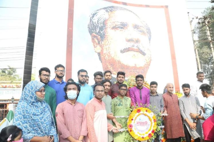 যবিপ্রবি প্রতিনিধি: জাতির পিতা বঙ্গবন্ধু শেখ মুজিবুর রহমানের জন্মবার্ষিকী ও জাতীয় শিশু দিবস উপলক্ষে যশোর বিজ্ঞান ও প্রযুক্তি বিশ্ববিদ্যালয় সাংবাদিক সমিতির (যবিপ্রবিসাস) পক্ষ থেকে বৃহস্পতিবার (১৭ মার্চ) যশোর শহরস্থ বঙ্গবন্ধু ম্যুরালে শ্রদ্ধাঞ্জলি অর্পণ করা হয়েছে।