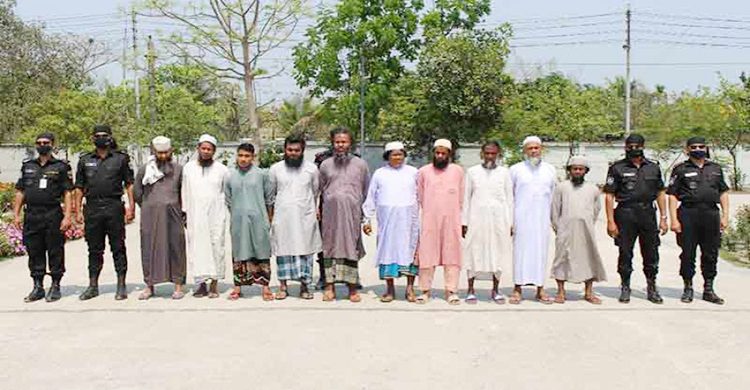 এ সময় আনোয়ার কবির মিলন ওরফে মিদ্দাত হোসেন (৫০), সোহেল রানা (৩০), আমিনুল (৩৮), কামরুল ইসলাম (৫৫), রিফাত রহমান (২৪), আব্দুর রউফ (৬২), মো. শেখ ফরিদ (২৭), আব্দুল আলীম (৫০), মো. রফিকুল ইসলাম (৪৬) ও তালহা ইসলামকে (১৯) গ্রেফতার করা হয়। ঘটনাস্থল থেকে বিপুল পরিমাণ উগ্রবাদী বই ও নথিপত্র উদ্ধার করা হয়।