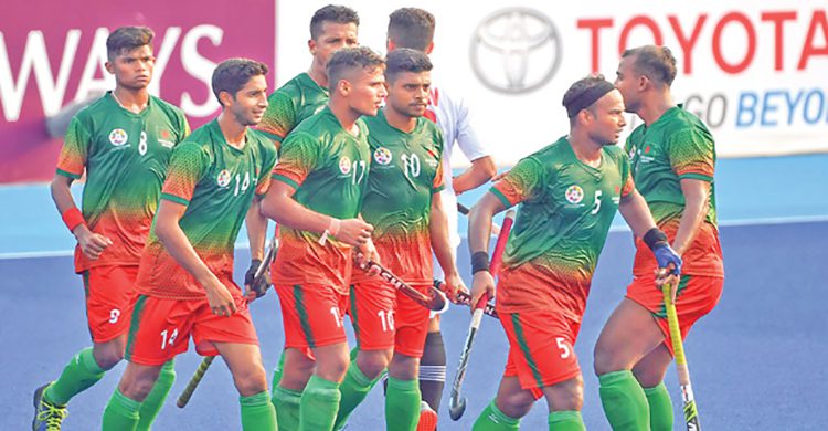 ৭ মিনিটে রাসেল মাহমুদ জিমির পুশে সারোয়ারের থামানো বলে আশরাফুল ইসলাম ড্রাগ ফ্লিকে লক্ষ্যভেদ করেন। ৯ মিনিটে একই কম্বিনেশন থেকে দ্বিতীয় গোল এসেছে। আশরাফুল ইসলাম একইভাবে গোল করে দলকে আবারও এগিয়ে নেন। ৩৪ মিনিটে পেনাল্টি কর্নার থেকে খোরশেদুর রহমান, ৪০ মিনিটে পেনাল্টি কর্নার থেকে আশরাফুল, ৪১ মিনিটে পিসি থেকে আশরাফুল, ৪৫ মিনিটে পিসি থেকে খোরশেদুর গোল করেন।