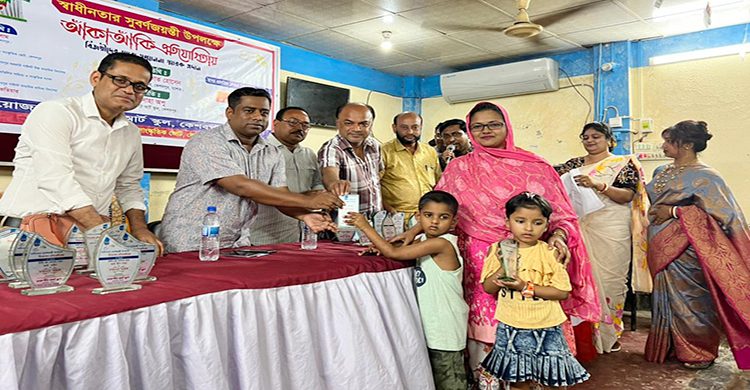 কেশবপুর (যশোর) প্রতিনিধি: কেশবপুর চারুপীঠ আর্ট স্কুলের উদ্যোগে স্বাধীনতার সুবর্ণজয়ন্তী উপলক্ষে চিত্রাঙ্কন প্রতিযোগিতায় অংশ নিয়ে ২৮ শিক্ষার্থী পেল সম্মাননা। সোমবার (২৮মার্চ) বিকালে উপজেলা প্রাথমিক শিক্ষক সমিতির মিলনায়তনে আনুষ্ঠানিকভাবে তাদের হাতে পুরস্কার তুলে দেওয়া হয়।