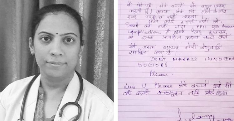 মৃত্যুই প্রমাণ করবে আমি নির্দোষ। দয়া করে ডাক্তারদের হয়রানি করবেন না। আত্মহত্যার আগে এই বার্তাই দিয়ে গেলেন খুনের অভিযোগে অভিযুক্ত চিকিৎসক অর্চনা শর্মা। মঙ্গলবার তিনি আত্মহত্যা করেন। আত্মহত্যার আগে একটি সুইসাইড নোটে তিনি এই কথাগুলো লিখে যান। রাজস্থানের দৌসা জেলার ঘটনা।