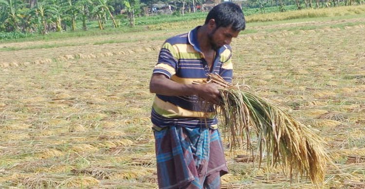 যেখানে প্রতিবিঘাতে ধান হয় ২৫ থেকে ২৬ মন, সেখানে জমির ধান ঝড়-বৃষ্টিতে পড়ে গিয়ে ধান হচ্ছে ১৮ থেকে ২২ মন। ফলন ঠিকই হয়েছিল কিন্তু ঝড়-বৃষ্টিতে পড়ে গিয়ে জমিতে ধান নষ্ট হয়েছে।