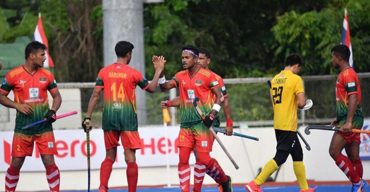 এশিয়ান গেমস হকির বাছাই পর্বে সাফল্যের ধারাবাহিকতা অব্যাহত রেখেছে বাংলাদেশ। এবার স্বাগতিক থাইল্যান্ডকে হারিয়ে দিয়েছে লাল-সবুজের দল।