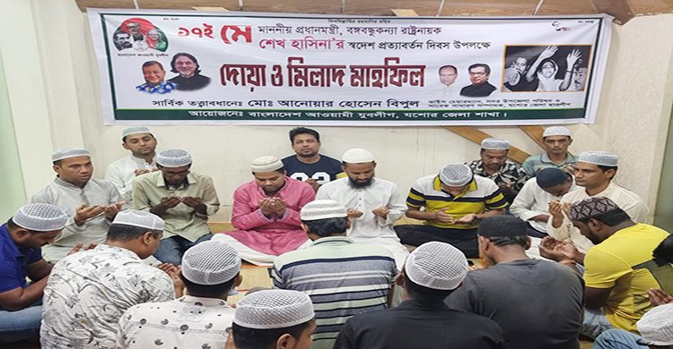 নিজস্ব প্রতিবেদক: বঙ্গবন্ধুকন্যা রাষ্ট্রনায়ক প্রধানমন্ত্রী শেখ হাসিনার স্বদেশ প্রত্যাবর্তন দিবস উপলক্ষে যশোরে দোয়া ও মিলাদ মাহফিল অনুষ্ঠিত হয়েছে।