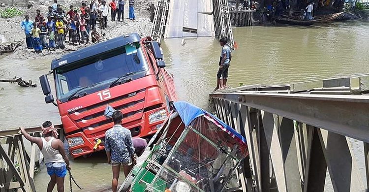 জানা গেছে, ভোলা থেকে ছেড়ে আসা একটি পাথরবোঝাই ট্রাক সকাল সাড়ে ১০টার দিকে ডাওরী বাজার বেইলি ব্রিজ পার হচ্ছিল। এ সময় ব্রিজটি মাঝখান দিয়ে ভেঙে ট্রাকসহ খালে পড়ে যায়। খবর পেয়ে লালমোহন থানা পুলিশ ও ফায়ার সার্ভিসের কর্মীরা ঘটনাস্থলে গিয়ে যানবাহন ও যাত্রীদের উদ্ধার করেন।