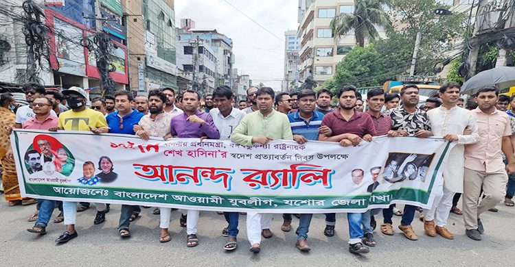 যশোর: বঙ্গবন্ধুকন্যা রাষ্ট্রনায়ক প্রধানমন্ত্রী শেখ হাসিনার স্বদেশ প্রত্যাবর্তন দিবসে যশোরে আওয়ামী যুবলীগের আয়োজনে বর্ণাঢ্য আনন্দ র্যালি অনুষ্ঠিত হয়েছে।