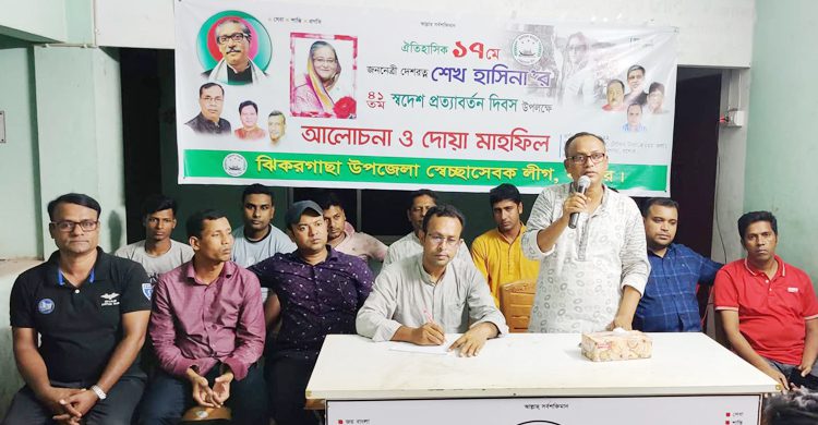 ঝিকরগাছা (যশোর) প্রতিনিধি: বাংলাদেশ আওয়ামী লীগের সভাপতি ও বর্তমান প্রধানমন্ত্রী শেখ হাসিনার ৪১তম স্বদেশ প্রত্যাবর্তন দিবসে যশোরের ঝিকরগাছায় আলোচনা সভা ও দোয়া মাহফিল অনুষ্ঠিত হয়েছে।