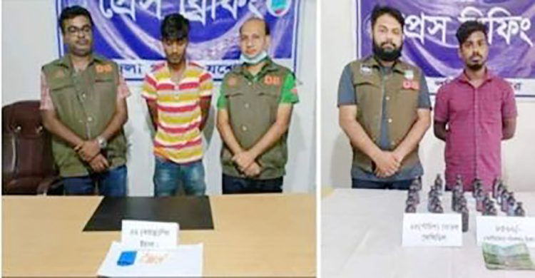 গ্রেফতারকৃতরা হলেন উপজেলার পুড়াপাড়া গ্রামের ক্লাবপাড়া এলাকার ফজলুর রহমানের ছেলে রাব্বী রহমান ও উপজেলার পশ্চিম কারিগর পাড়ার নিসার উদ্দিনের ছেলে আবু বক্কর সিদ্দিক।