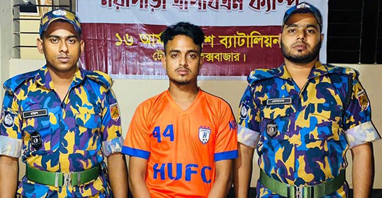 শনিবার (২৮ মে ) ভোর রাতে টেকনাফ নয়াপাড়া রেজিস্টার্ড ক্যাম্পের এইচ ব্লক থেকে তাকে আটক করা হয়। সে ক্যাম্পের এইচ- ব্লকের ৬৭৭/১ নং শেডের মৃত মোহাম্মদ হোসেনের ছেলে।