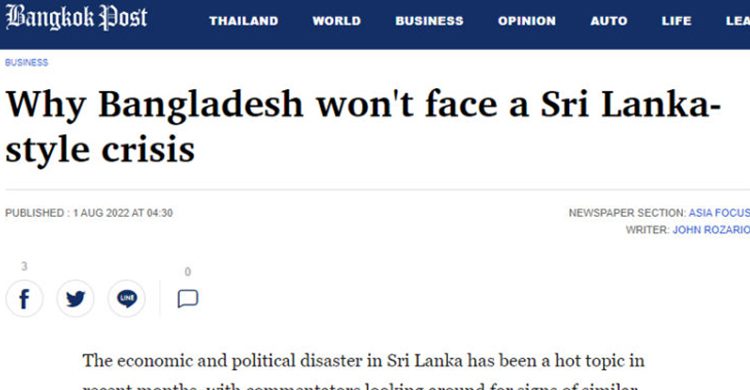 থাইল্যান্ড থেকে প্রকাশিত ‘ব্যাংকক পোস্ট’ এর এক বিশ্লেষণে বাংলাদেশ ও শ্রীলঙ্কার অর্থনীতির তুলনামূলক বিচার করেছেন ভারতের কর্ণাটকভিত্তিক গবেষক ও বিশ্লেষক জন রোজারিও।