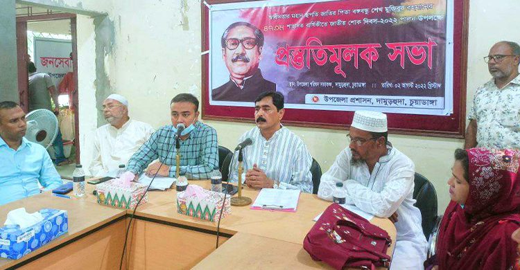 চুয়াডাঙ্গা জেলার দামুড়হুদা উপজেলায় জাতির পিতা বঙ্গবন্ধু শেখ মুজিবুর রহমানের ৪৭তম শাহাদতবার্ষিকী উপলক্ষে প্রস্ততি সভা অনুষ্ঠিত হয়েছে।