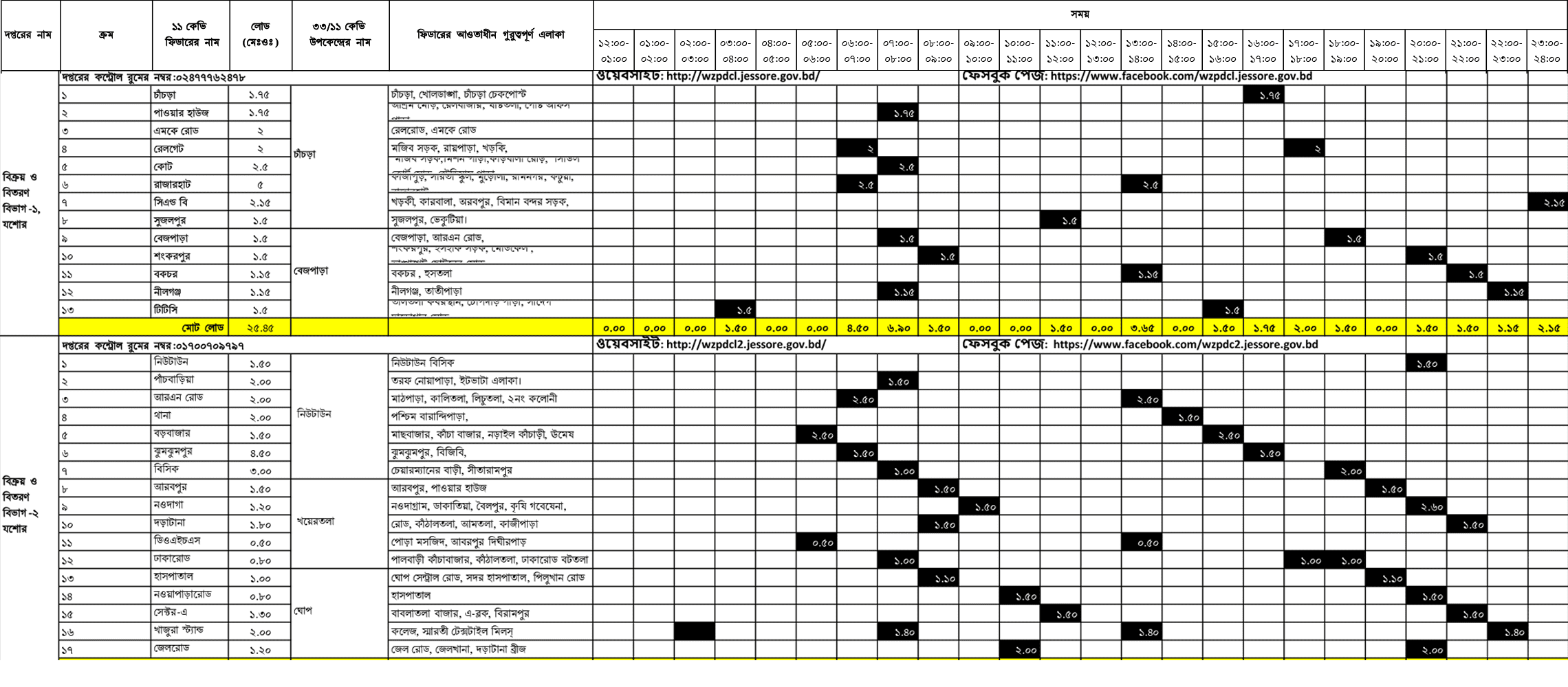 সারাদেশে এলাকাভিত্তিক শুরু হয়েছে লোডশেডিং। এর পরিপ্রেক্ষিতে যশোরে লোডশেডিংয়ের শিডিউল প্রকাশ করেছে ওয়েস্টজোন পাওয়ার জেনারেশন ডিস্ট্রিবিউশন কোম্পানি (ওজোপাডিকো)।