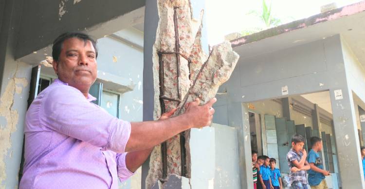 ওই বিদ্যালয়ের চতুর্থ শ্রেণির ছাত্র সাকিবুল হাসান বলেন, ক্লাস চলাকালে আমি স্যারের কাছে খাতা দেখাতে গিয়েছিলাম। এ সময় হঠাৎ করে সিলিং ফ্যান খসে স্যারের মাথায় পড়ে। স্যারের মাথা কেটে যায়, সাথে আমারও মাথা কেটে যায়। আমরা এখানে ক্লাস করি। আমাদের ভয় করে এ ভাঙা স্কুলে ক্লাস করতে। আমরা নতুন স্কুল চাই।