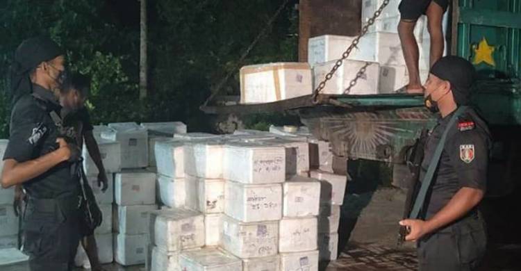 যশোরে জেলি পুশ করা দুইশ কেজি চিংড়ি মাছ জব্দ ও তা ধ্বংস করেছে র্যাব-৬ ও ভ্রাম্যমাণ আদালত।