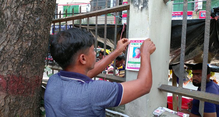 যশোর শহরের হাসপাতাল মোড়ে দেয়ালে দেয়ালে পোস্টার লাগাতে দেখা আব্দুর সাত্তারকে।