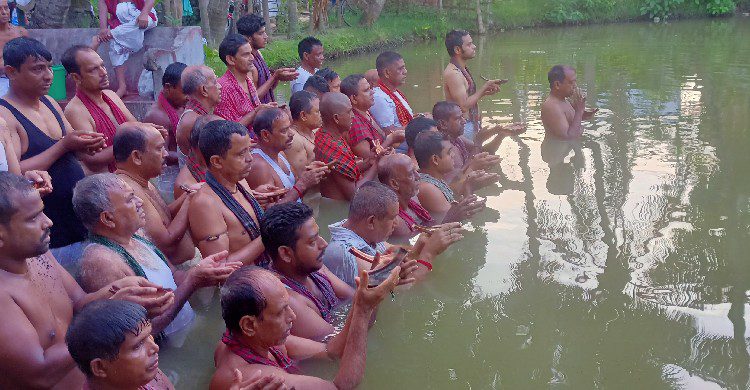 পুরহিত্য করেন বাসুদেব সেন গুপ্ত। পূর্বপুরূষের আত্মার উদ্দেশে জল নিবেদন করে তাদের সন্তুুষ্ট করাকে তর্পণ বলা হয়। ভগবান ও পূর্ব পুরুষের আত্মার নাম উচ্চারণ করে তাদের কাছে সুখ শান্তি প্রার্থনা করা হয়।