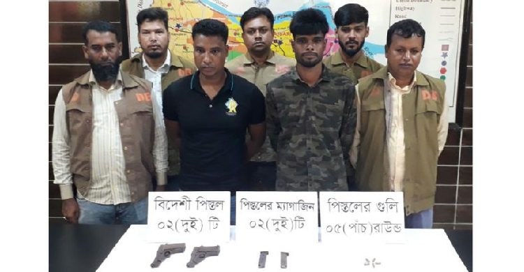 রাজবাড়ীতে আমেরিকার তৈরি ২টি পিস্তল, ২টি ম্যাগজিন ও ৫ রাউন্ড গুলিসহ পাংশা পৌর কাউন্সিলর তাজুল ইসলামসহ দুজনকে গ্রেফতার করেছে পুলিশ।
