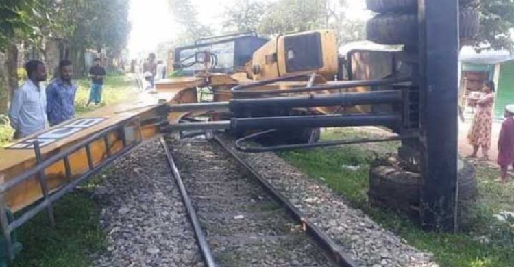 সকালে রেললাইন মেরামতের জন্য স্লিপার আনলোড কাজে ব্যবহৃত ক্রেন উল্টে যায়। এতে ঢাকা-ময়মনসিংহ লাইনে রেল যোগাযোগ বন্ধ হয়ে যায়।