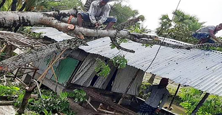 এদিকে বরগুনার সদর উপজেলার সোনাখালী এলাকায় একটি ঘরের চালে গাছ পড়লে ওই ঘরে থাকা আমেনা খাতুন নামের এক নারী মারা যান।