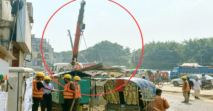 নিরাপত্তা বেষ্টনী ছাড়াই নির্মাণসামগ্রী তোলার কারণে ১৫ আগষ্টে ঘটে যাওয়া দুর্ঘটনার পরেও বন্ধ হয়নি কাজ।