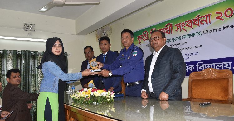 প্রধান অতিথি হিসেবে সংবর্ধনা প্রদান করেন যশোরের পুলিশ সুপার প্রলয় কুমার জোয়ারদার। তিনি বলেন যেসব শিক্ষার্থী কৃতিত্ব অর্জন করেছো। তোমাদের আরো ভাল ভাবে উচ্চ শিক্ষা গ্রহণ করতে হবে। যাতে করে প্রধানমন্ত্রীর স্মার্ট বাংলাদেশ গড়ার ক্ষেত্রে তোমরা অবদান রাখতে পার। আর যেখানেই থাকো না কেন, বিদ্যালয়ের দিকে তোমাদের সুনজর থাকে।