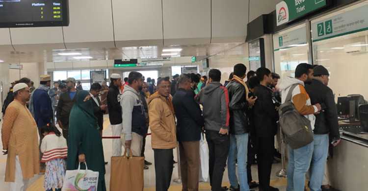 শনিবার (৩১ ডিসেম্বর) সকালে রাজধানীর আগারগাঁও মেট্রোরেল স্টেশনে যাত্রীদের দীর্ঘ সারি চোখে পড়েনি।