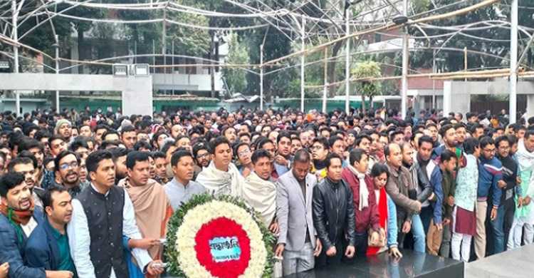 বুধবার (৪ জানুয়ারি) সকালে ৮টার দিকে ছাত্রলীগের কেন্দ্রীয় কমিটির সভাপতি সাদ্দাম হোসেন ও সাধারণ সম্পাদক শেখ ওয়ালি আসিফ ইনানের নেতৃত্বে বঙ্গবন্ধুর প্রতিকৃতিতে পুষ্পস্তবক অর্পণ করেন সংগঠনটির নেতাকর্মীরা।