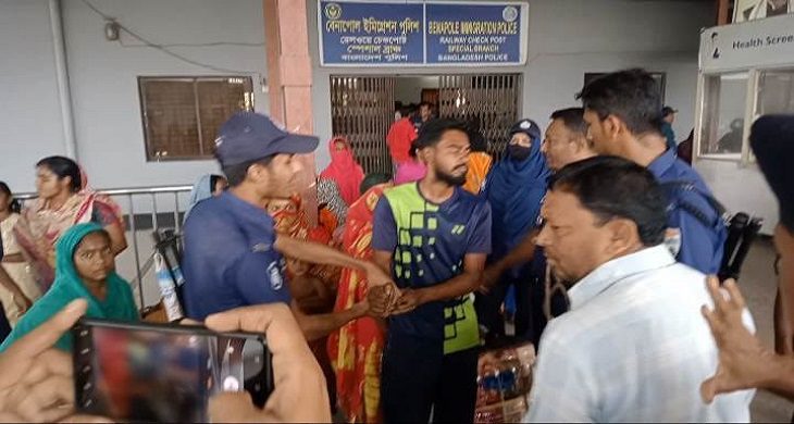 কোলকাতা থেকে বেনাপোল রেলস্টেশনে ছেড়ে আসা খুলনাগামী ‘ বন্ধন এক্সপ্রেস’ ট্রেনে অভিযান চালিয়ে অবৈধ ভারতীয় পন্য, বিপুল পরিনমাণ বিদেশী মদসহ পাঁচ জনকে আটক করেছে ট্যাস্কফোর্স। রবিবার বেনাপোল রেলষ্টেশনে বিজিবি, পুলিশ ও ট্যাক্সফোর্সের যৌথ অভিযানে তাদেরকে অবৈধ পন্যসহ আটক করা হয়।