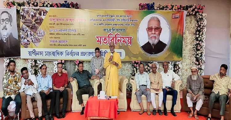 শনিবার (২৭ মে) বিকেল ৫টার দিকে খুলনা প্রেসক্লাবের শহীদ শেখ আবু নাসের ব্যাংকুয়েট হলে স্বাধীনতা সাংবাদিক নির্বাচন প্রচারণা কমিটির আয়োজনে সাংবাদিকদের সঙ্গে মতবিনিময়কালে তিনি এসব কথা বলেন।