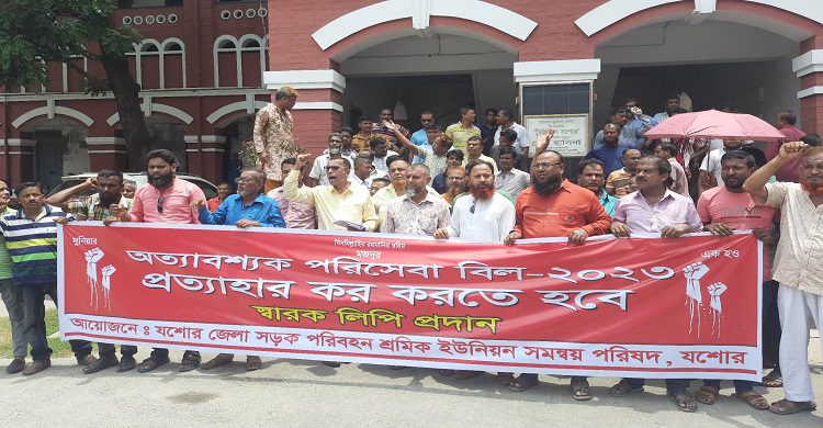 অত্যাবশ্যকীয় পরিষেবা বিল প্রত্যাহারের দাবি জানিয়ে জেলা প্রশাসকের মাধ্যমে প্রধানমন্ত্রীর কাছে স্বারকলিপি দিয়েছে যশোর জেলা সড়ক পরিবহন শ্রমিক ইউনিয়ন সমন্বয় পরিষদ ও শ্রমিক কর্মচারী ঐক্য পরিষদ।