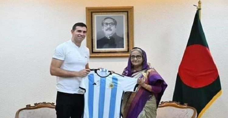আর্জেন্টিনার বিশ্বকাপ জয়ের অন্যতম নায়ক গোলরক্ষক এমলিয়ানো মার্টিনেজ প্রধানমন্ত্রী শেখ হাসিনার সঙ্গে সৌজন্য সাক্ষাৎ করেছেন।