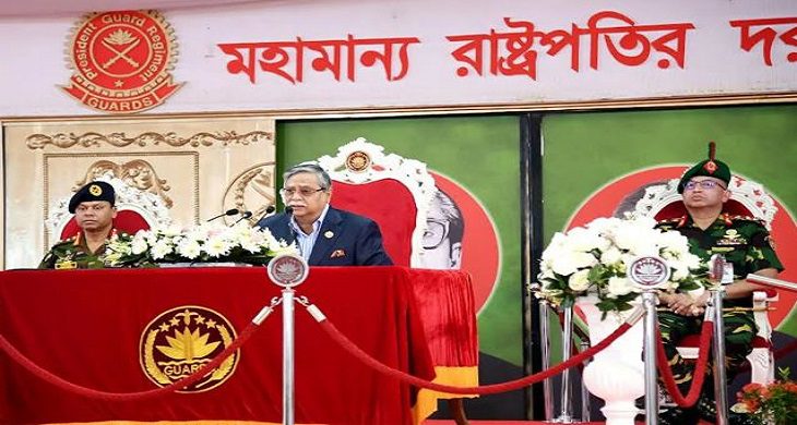 আজ মঙ্গলবার ঢাকা সেনানিবাসে প্রেসিডেন্ট গার্ড রেজিমেন্ট (পিজিআর) এর সদর দফতরে ৪৮তম প্রতিষ্ঠাবার্ষিকী উদযাপন অনুষ্ঠানে দেয়া ভাষণে রাষ্ট্রপতি এ নির্দেশ দেন।