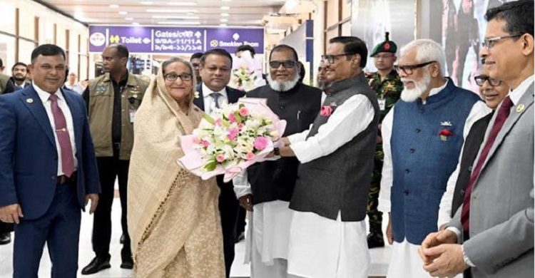 প্রধানমন্ত্রী শেখ হাসিনা যুক্তরাষ্ট্র ও যুক্তরাজ্যে ১৬ দিনের সরকারি সফর শেষে লন্ডন থেকে আজ ঢাকায় পৌঁছেছেন। প্রধানমন্ত্রীকে বহনকারী বিমান বাংলাদেশ এয়ারলাইন্সের একটি বাণিজ্যিক ফ্লাইট (বিজি-২০৮) আজ বেলা ১২টা ১৫ মিনিটে হযরত শাহজালাল আন্তর্জাতিক বিমানবন্দরে অবতরণ করে।