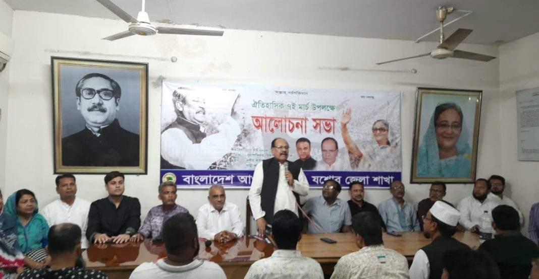 যশোর জেলা আওয়ামী লীগের আয়োজনে গাড়িখানা রোডস্থাল আওয়ামী লীগের দলীয় কার্যালয়ে ৭ই মার্চের আলোচনা সভা অনুষ্ঠিত হয়েছে।