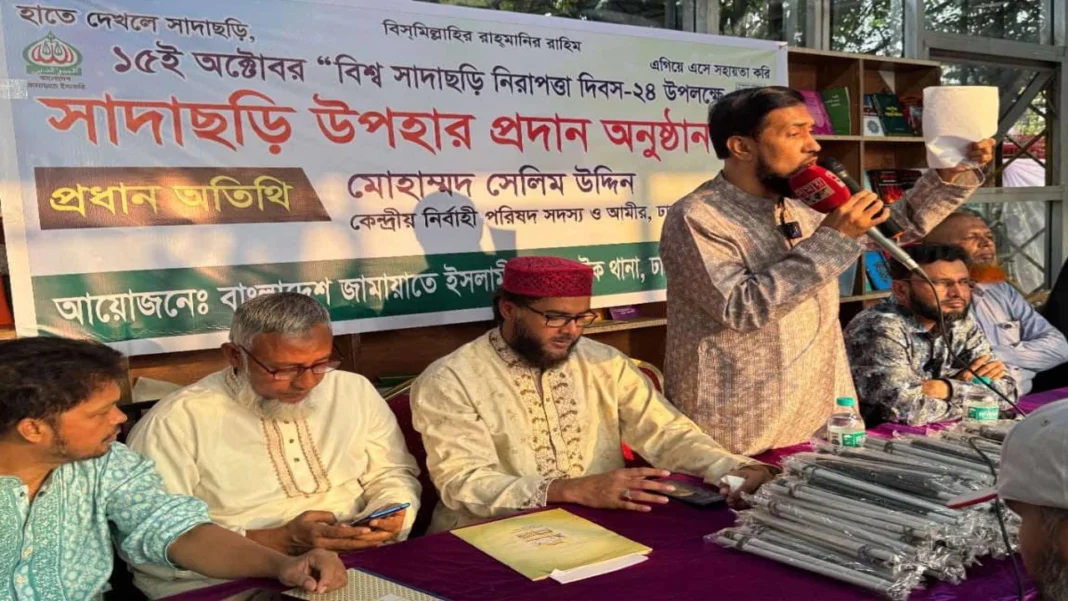 বাংলাদেশ জামায়াতে ইসলামী ১৫ অক্টোবর, বিশ্ব সাদাছড়ি নিরাপত্তা দিবস উপলক্ষে রাজধানীর ভাষানটেক থানায় ১৫০ জন মানুষকে বিনামূল্যে সাদাছড়ি উপহার দিয়েছে। এ অনুষ্ঠানের মাধ্যমে দৃষ্টিহীন ব্যক্তিদের সহায়তার জন্য এ উদ্যোগ নেওয়া হয়।