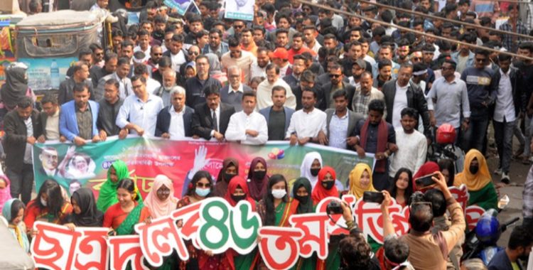 বর্ণাঢ্য আয়োজনে যশোরে জাতীয়তাবাদী ছাত্রদলের ৪৬তম প্রতিষ্ঠাবার্ষিকী উদযাপিত হয়েছে। আজ বুধবার (১ জানুয়ারি) এ উপলক্ষে নানা কর্মসূচি পালন করা হয়। কর্মসূচির মধ্যে ছিল সকালে লালদীঘিপাড়ে দলীয় কার্যালয়ে জাতীয় ও সংগঠনের পতাকা উত্তোলন, শহরের কারবালায় শায়িত বিএনপির স্থায়ী কমিটির সদস্য ও সাবেক মন্ত্রী তরিকুল ইসলামের কবর জিয়ারত, রক্তদান কর্মসূচি, আলোচনা সভা এবং বর্ণাঢ্য র্যালি।