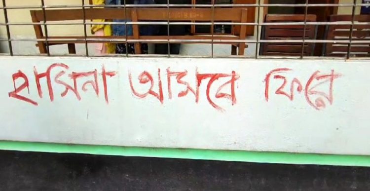 মেহেরপুরের গাংনী উপজেলা পরিষদের বিভিন্ন সরকারি অফিসের দেওয়ালে ‘শেখ হাসিনা আসবে ফিরে’ এবং ‘জয় বাংলা’ স্লোগান লেখা হয়েছে। ধারণা করা হচ্ছে, রোববার রাতের কোনো এক সময় এই লেখাগুলো করা হয়েছে।