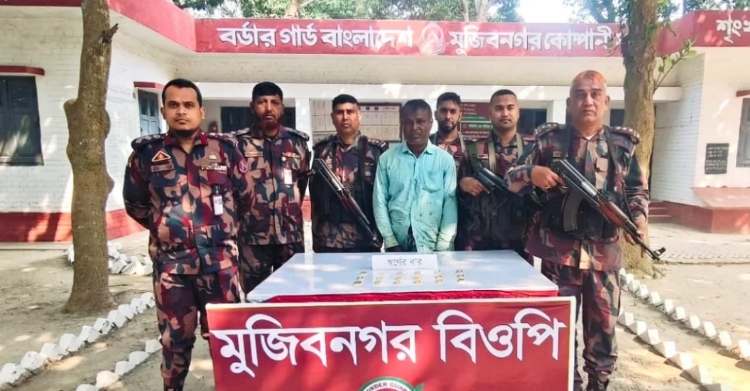 মেহেরপুরের মুজিবনগর সীমান্তে সোনার ১৮টি বারসহ নুর হোসেন (৪৮) নামে এক ভারতীয় নাগরিককে গ্রেপ্তার করেছে বর্ডার গার্ড বাংলাদেশ (বিজিবি)। আজ মঙ্গলবার সকাল সাড়ে ১০টার দিকে মুজিবনগর উপজেলার বাগোয়ান ইউনিয়নের ভবেরপাড়া গ্রামে অভিযান চালিয়ে তাকে গ্রেপ্তার করা হয়।