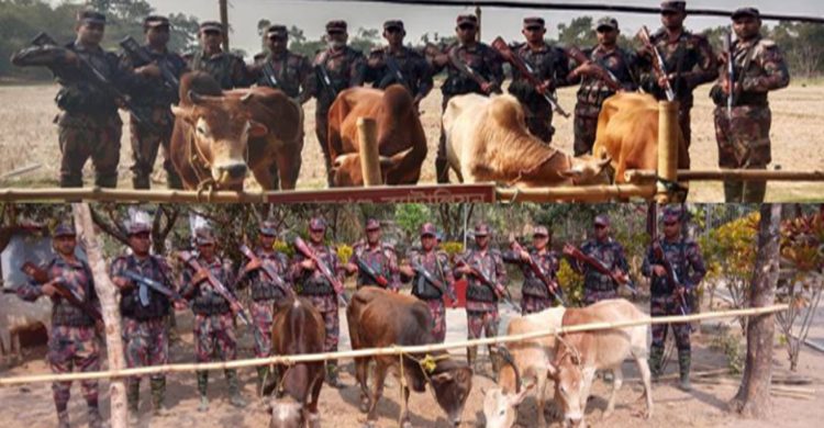 বিজিবি সূত্রে জানা যায়, শুক্রবার (২১ ফেব্রুয়ারি) ভোর রাতে দোয়ারাবাজার উপজেলার বাংলাবাজার ইউনিয়নের বাঁশতলা ও পেকপাড়া বিওপি টিম বিশেষ অভিযান পরিচালনা করে। সীমান্ত পিলার ১২৩০/১-এস ও ১২২৯/৭-এস থেকে প্রায় ১৫০ গজ বাংলাদেশের অভ্যন্তরে ঝুমগাঁও ও মোকামছড়া এলাকা থেকে মালিকবিহীন ৮টি ভারতীয় গরু আটক করা হয়। উদ্ধারকৃত গরুর আনুমানিক মূল্য ৭ লক্ষ ২০ হাজার টাকা।