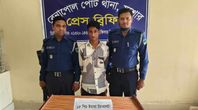 যশোরের বেনাপোল পোর্ট থানা পুলিশের অভিযানে ১৫ পিস ইয়াবাসহ এক মাদক কারবারিকে আটক করা হয়েছে। আটক ব্যক্তির নাম করিম মিয়া (পিতা: মৃত ফরিদ মিয়া), তিনি বেনাপোলের ভবেরবেড় গ্রামের বাসিন্দা।