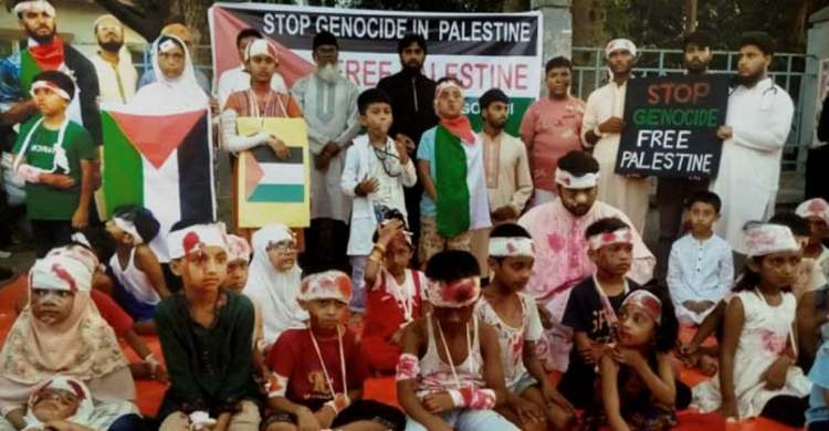 গাজায় ইসরায়েলের হামলায় ক্ষতিগ্রস্ত শিশুদের প্রতি সংহতি জানিয়ে যশোরের শিশু শিল্পীরা রাজপথে পারফর্মিং আর্টের মাধ্যমে তাদের যন্ত্রণা ও বেদনাকে তুলে ধরেছে।