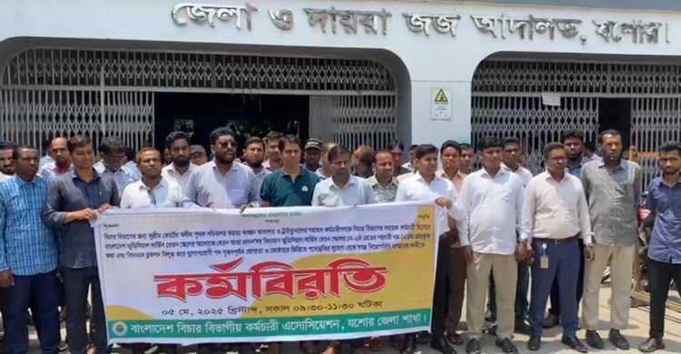 বাংলাদেশ বিচার বিভাগীয় কর্মচারী এসোসিয়েশন যশোর জেলা শাখার উদ্যোগে কেন্দ্রীয় কর্মসূচির অংশ হিসেবে আজ ৫ মে ২০২৫ ইং তারিখে সকাল ৯:৩০ থেকে ১১:৩০টা পর্যন্ত কর্মবিরতি পালন করা হয়।