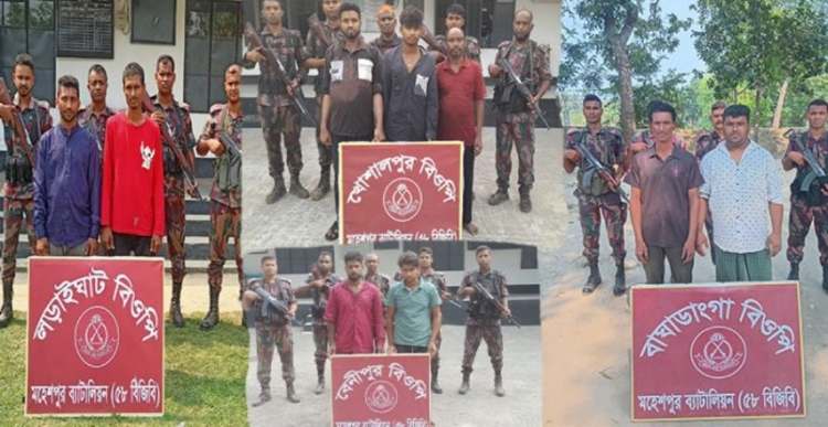 শ্যামকুড় সীমান্ত দিয়ে ভারতে প্রবেশের সময় ২০ জন, খোশালপুর সীমান্ত থেকে ১৩ জন, বেনীপুর সীমান্ত থেকে ১৪ জন এবং বাঘাডাঙ্গা সীমান্ত এলাকা থেকে ৫ জনকে আটক করা হয়। আটককৃতদের মধ্যে অনেক নারী ও শিশু রয়েছে।